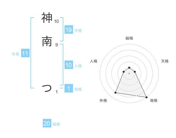 神南 つさんの総格は20画の1点!