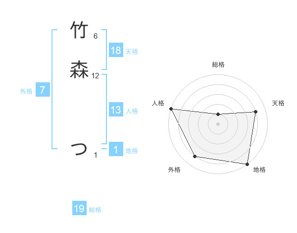 竹森 つさんの天格は18画の4点!