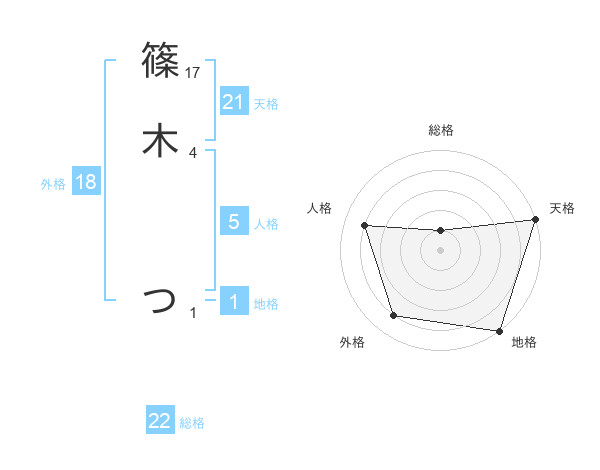 篠木 つさんの天格は21画の5点!