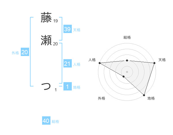 藤瀬 つさんを姓名の画数から五運を鑑定