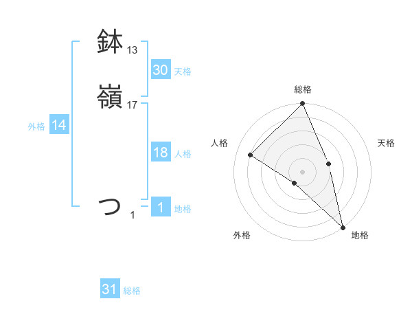 鉢嶺 つさんの総格は31画の5点!