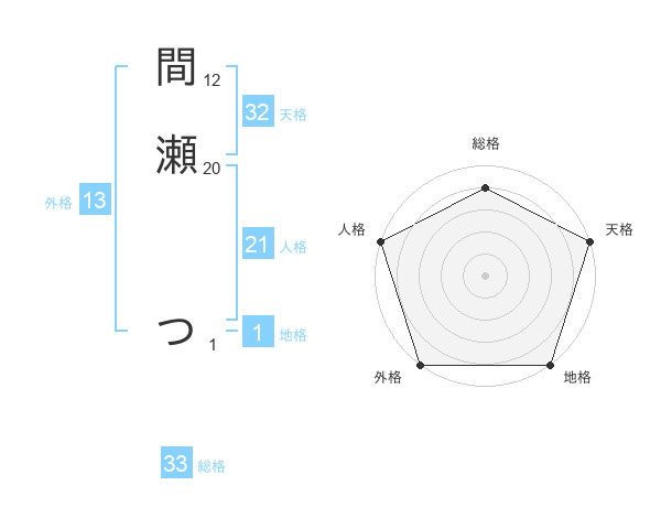 間瀬 つさんの天格は32画の5点!