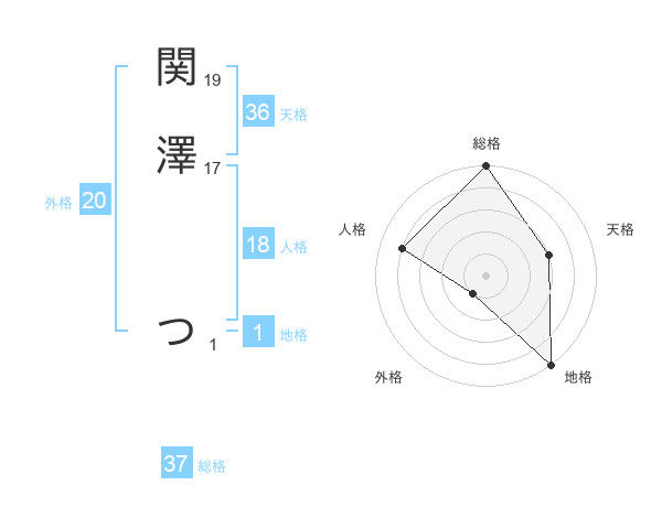 関澤 つさんの総格は37画の5点!