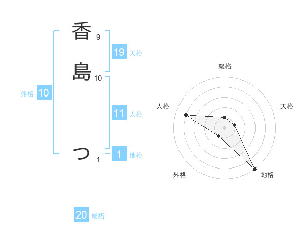 香島 つさんの総格は20画の1点!