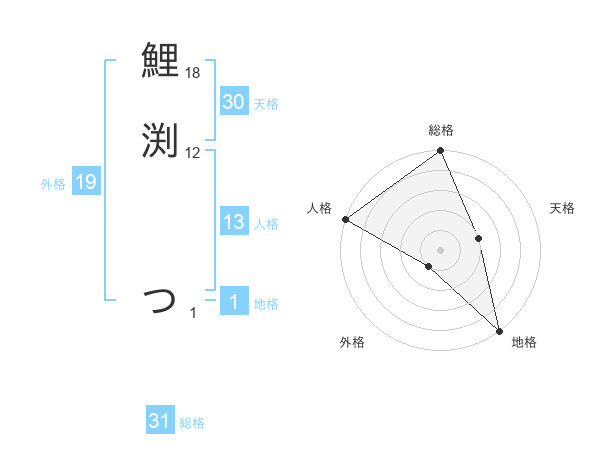 鯉渕 つさんの総格は31画の5点!