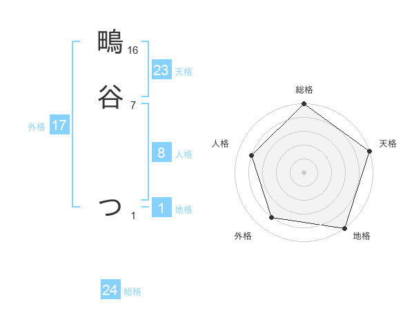 鴫谷 つさんの地格は1画の5点!