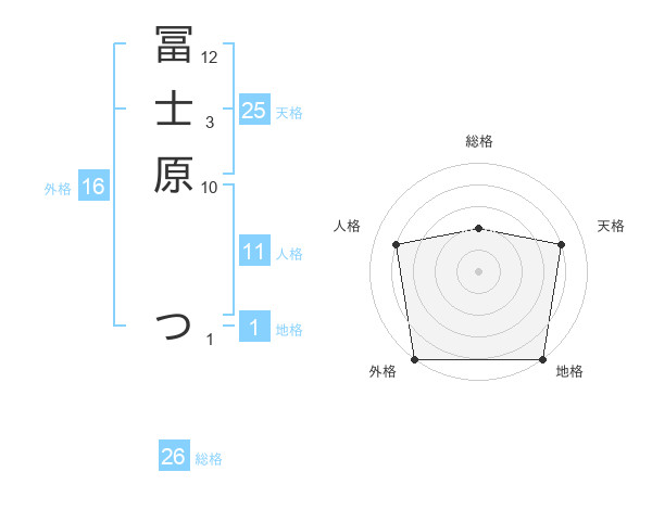 冨士原 つさんの外格は16画の5点!