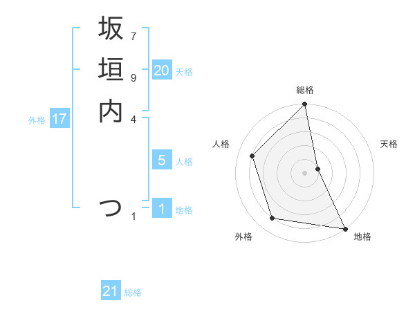 坂垣内 つさんの総格は21画の5点!