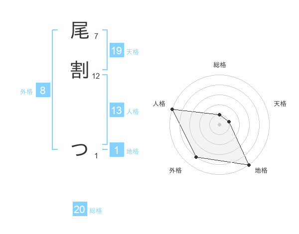 尾割 つさんの総格は20画の1点!