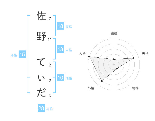 佐野 てぃださんの外格は15画の4点!