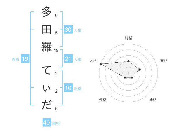 多田羅 てぃださんを姓名の画数から五運を鑑定