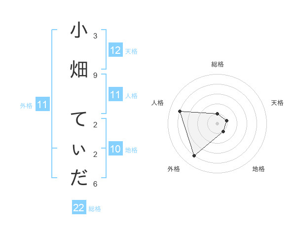 小畑 てぃださんの総格は22画の1点!
