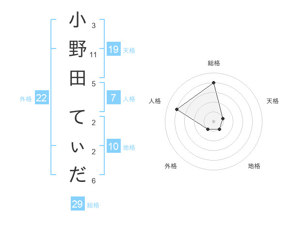小野田 てぃださんを姓名の画数から五運を鑑定
