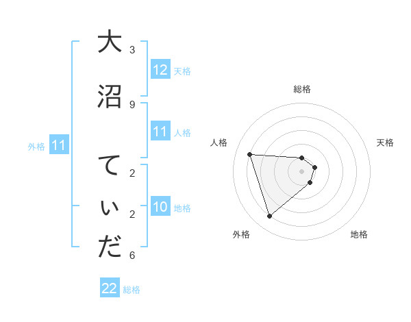 大沼 てぃださんの総格は22画の1点