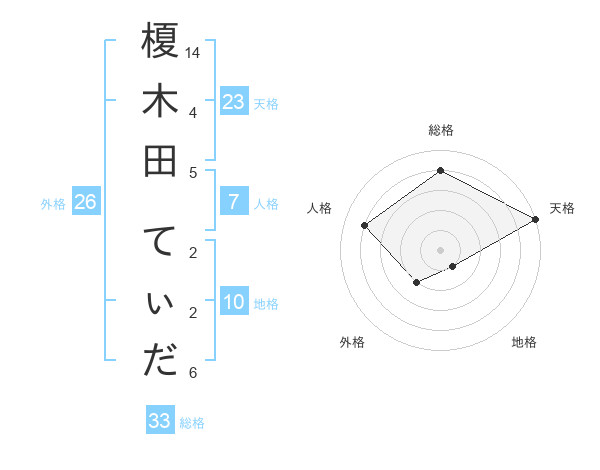 榎木田 てぃださんの天格は23画の5点!