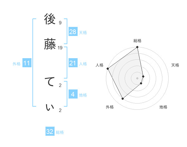 後藤 てぃさんの外格は11画の4点!