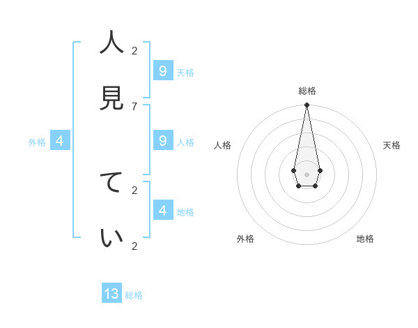 人見 ていさんの総格は13画の5点!