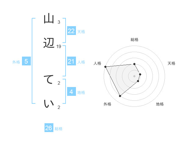 山辺 ていさんの総格は26画の2点!