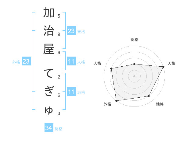 加治屋 てぎゅさんを姓名の画数から五運を鑑定