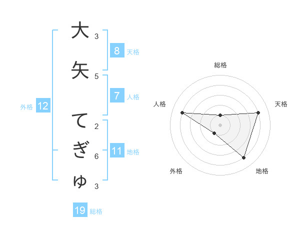 大矢 てぎゅさんを姓名の画数から五運を鑑定