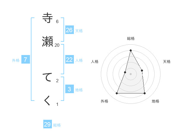 寺瀬 てくさんを姓名の画数から五運を鑑定