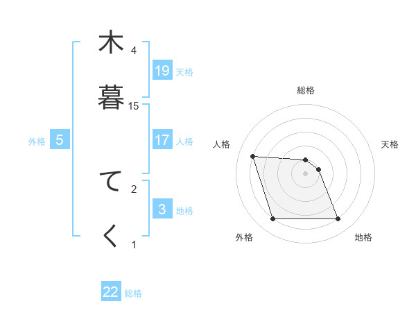 木暮 てくさんの総格は22画の1点!