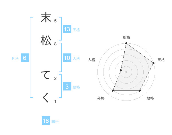 末松 てくさんの天格は13画の5点!