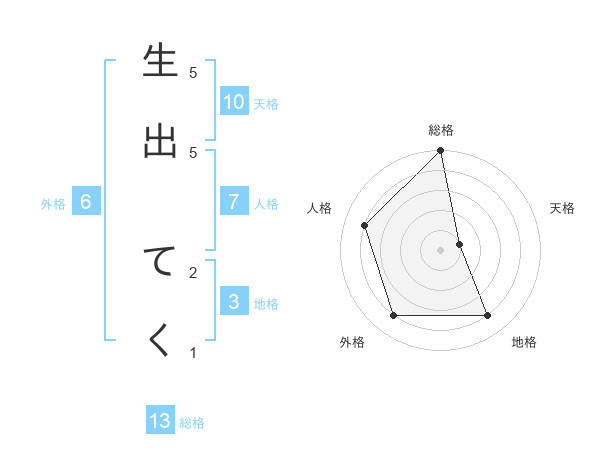 生出 てくさんの総格は13画の5点!