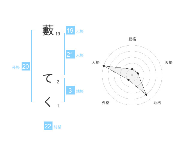 藪 てくさんの天格は19画の1点!