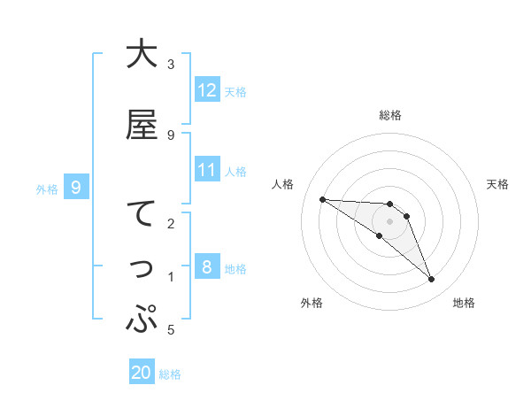 大屋 てっぷさんを姓名の画数から五運を鑑定