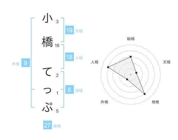 小橋 てっぷさんを姓名の画数から五運を鑑定