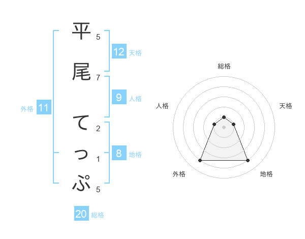 平尾 てっぷさんを姓名の画数から五運を鑑定