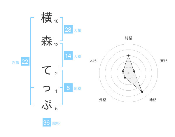 横森 てっぷさんを姓名の画数から五運を鑑定