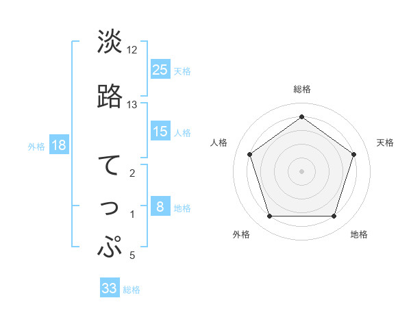 淡路 てっぷさんの総格は33画の4点!