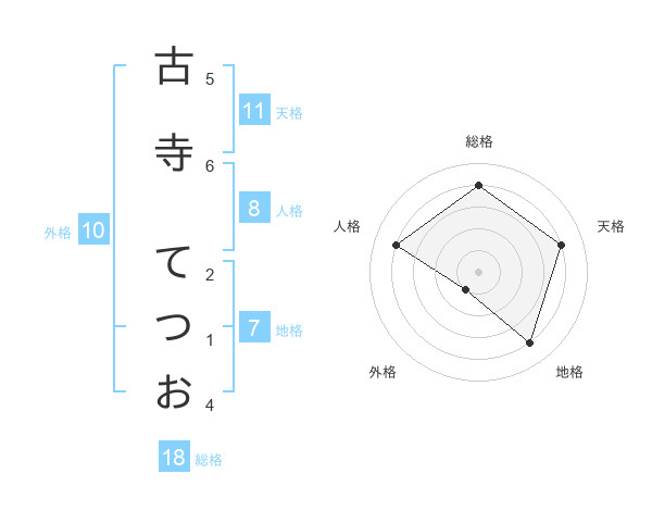 古寺 てつおさんを姓名の画数から五運を鑑定