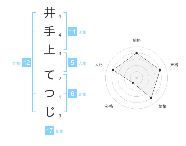 井手上 てつじさんを姓名の画数から五運を鑑定