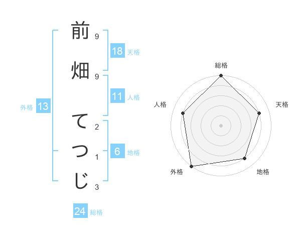 前畑 てつじさんを姓名の画数から五運を鑑定