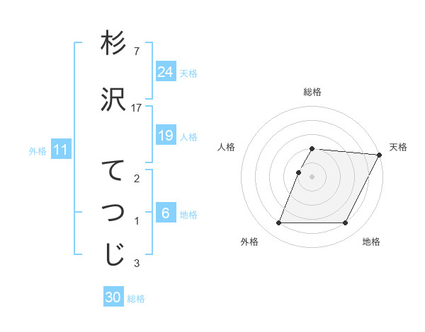 杉沢 てつじさんの天格は24画の5点!