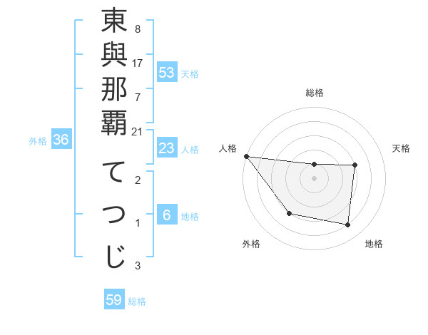 東與那覇 てつじさんを姓名の画数から五運を鑑定