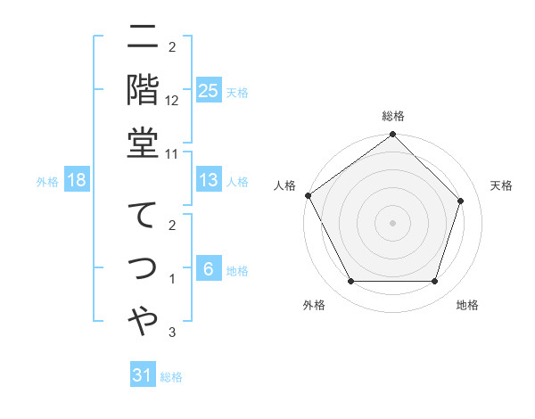 二階堂 てつやさんを姓名の画数から五運を鑑定