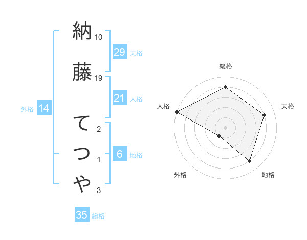 納藤 てつやさんの総格は35画の4点!
