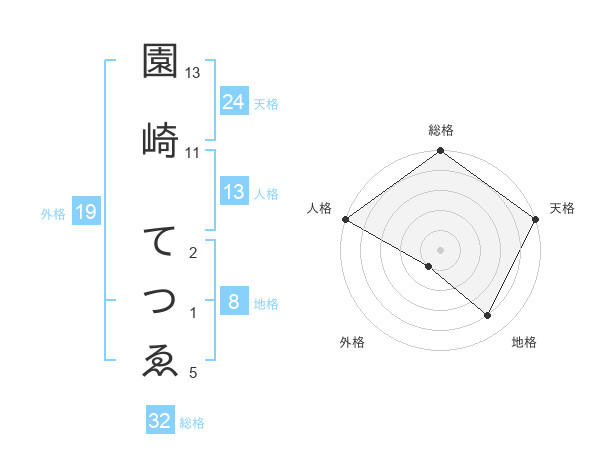 園崎 てつゑさんの天格は24画の5点!