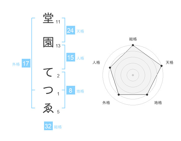 堂園 てつゑさんを姓名の画数から五運を鑑定