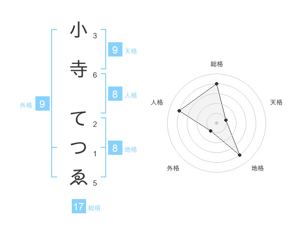 小寺 てつゑさんの総格は17画の4点!