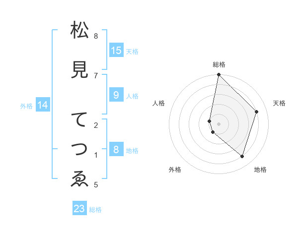 松見 てつゑさんを姓名の画数から五運を鑑定