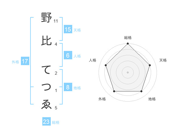 野比 てつゑさんを姓名の画数から五運を鑑定