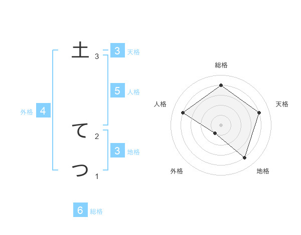 土 てつさんの地格は3画の4点!