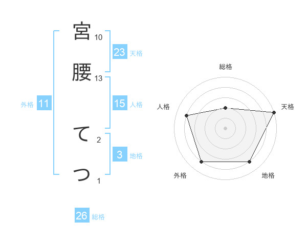 宮腰 てつさんを姓名の画数から五運を鑑定