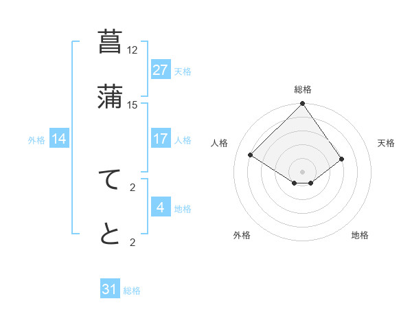 菖蒲 てとさんを姓名の画数から五運を鑑定