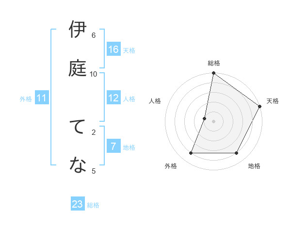 伊庭 てなさんを姓名の画数から五運を鑑定